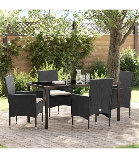 vidaXL Have Spisebordssæt med pude 5 pcs Sort Poly rattan Sort 160 x 80 x 73 cm