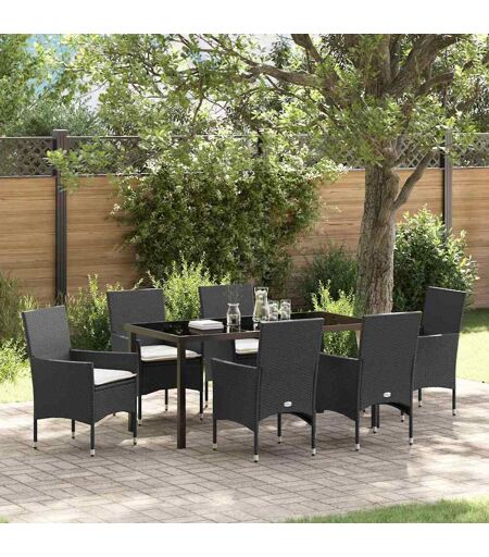 vidaXL Have Spisebordssæt med pude 7 pcs Sort Poly rattan Sort 160 x 80 x 73 cm