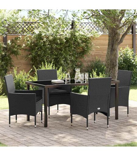 vidaXL Have Spisebordssæt med pude 5 pcs Sort Poly rattan Sort 160 x 80 x 73 cm