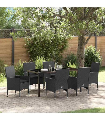 vidaXL Have Spisebordssæt med pude 7 pcs Sort Poly rattan Sort 160 x 80 x 73 cm
