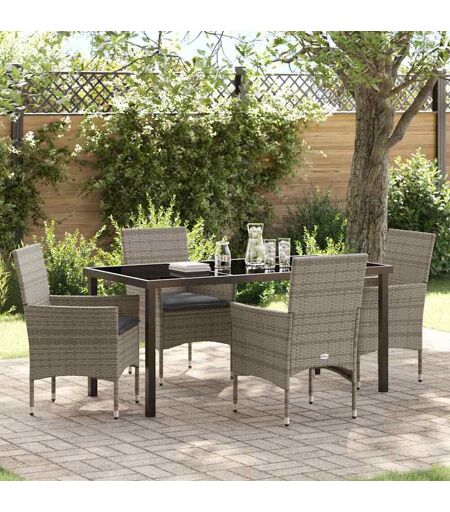 vidaXL Have Spisebordssæt med pude 5 pcs Grå Poly rattan Grå 160 x 80 x 73 cm