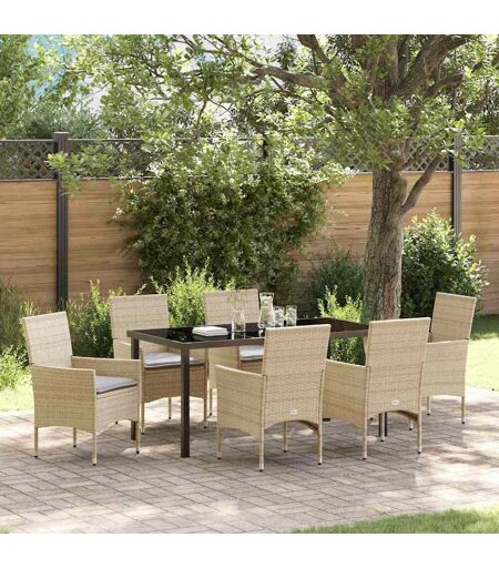 vidaXL Have Spisebordssæt med pude 7 pcs Beige Poly rattan Beige 160 x 80 x 73 cm