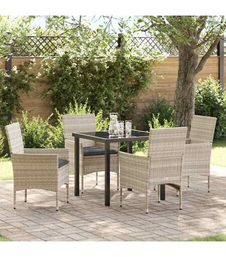 vidaXL Have Spisebordssæt med pude 5 pcs Lysegrå Poly rattan Lysegrå 80 x 80 x 73 cm