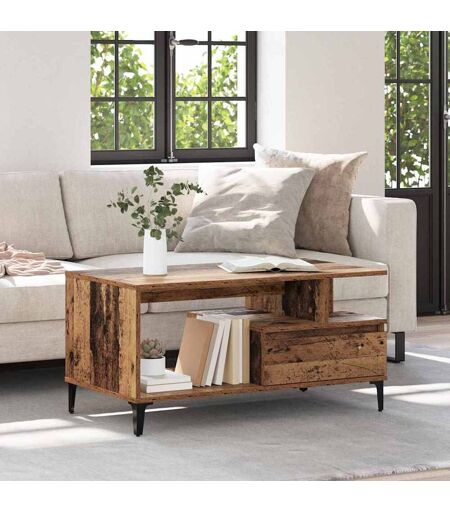 vidaXL Sofabord med skuffe Gammelt træ 90 x 49 x 45 cm Konstrueret træ Brun 90 x 49 x 45 cm