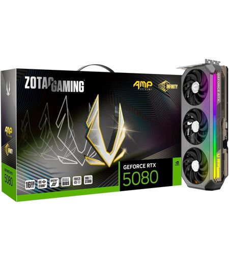 ZOTAC GeForce RTX 5080 AMP Extreme INFINITY er et avanceret grafikkort drevet af NVIDIAs GeForce RTX 5080 GPU. Den kraftfulde GeForce RTX 50-grafikkortserie er baseret på NVIDIA Blackwell-arkitekturen og tilbyder nye niveauer af spilrealisme, hastighed og energieffektivitet, AI-funktioner såsom billedgenerering, multi frame-generering og realistiske VR-oplevelser. Andre funktioner inkluderer Real-Time Ray Tracing, Ray Reconstruction, NVIDIA Ansel, med omfattende værktøjer til at tage skærmbilleder i spil, samt NVIDIA G-SYNC, G-SYNC HDR, NVIDIA DLSS 4, ShadowPlay, Highlights, NVENC Gen 9, AV1 Encoder og Decoder. GPU''en installeret på ZOTAC GeForce RTX 5080 AMP Extreme INFINITY har 10752 CUDA-kerner. GDDR7-hukommelsen på 16 GB har en 256-bit hukommelsescontroller. ...