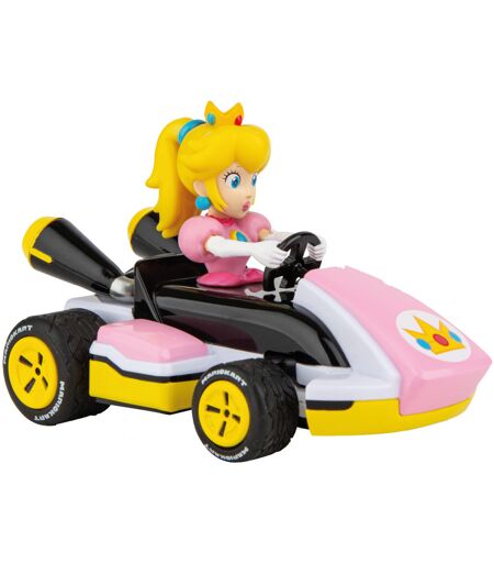 Gør dig klar til actionfyldt racersjov med dette fjernstyrede legetøj fra Carrera! Denne kvikke racerkart bringer Mario Karts spændende verden direkte ind i din stue. Med den avancerede 2,4 GHz fjernbetjening har du fuld kontrol over køretøjet og kan styre Peach i alle retninger. Karten accelererer op til en hastighed på 5 km/t og giver op til 30 minutters ren køreglæde, før LiFePo4-batteriet skal genoplades via USB. Takket være den automatiske afspærringsfunktion falder energieffektiviteten ikke ved vejen. Og det bedste af det hele: Køretøjet er "Ready to Run" - bare pak ud og kør ud på dit næste racereventyr! ...