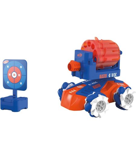 Kør og skyd - med Nerf Blasting Car fra Carrera. Dette fjernstyrede køretøj med et originalt Nerf-kørekort kører ikke kun op til 7 kilometer i timen, men har også et magasin med originale Nerf bløde pile, som selvfølgelig også kan affyres. Et mål for træning er også inkluderet. Om nødvendigt kan magasinet også fastgøres til controlleren. Nerf Blasting Car med 360° styrefunktion og drivdæk lavet af hård plast drives af et batteri og oplades via USB. Rejsetiden er op til 20 minutter. ...
