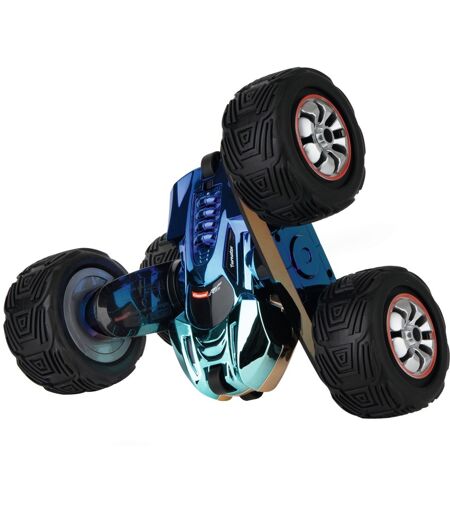 Betagende stunts med Turnator Color Flip fra Carrera: Dette fjernstyrede køretøj kører ikke kun frem og tilbage med sine separat styrbare aksler, men er også i stand til at vælte! I kombination med en tophastighed på op til 20 km/t giver Turnator en masse køreglæde med 360° stunts og en fantastisk farveskiftende effekt: Afhængigt af betragtningsvinklen ændres den specielle kamæleoneffektmaling. Og i mørke kommer LED-belysning i spil. Turnator Color Flip står på en fuldaffjedret undervogn med pneumatiske dæk og kan styres præcist med 2,4 GHz-fjernbetjeningen. Batteriet oplades via USB. ...