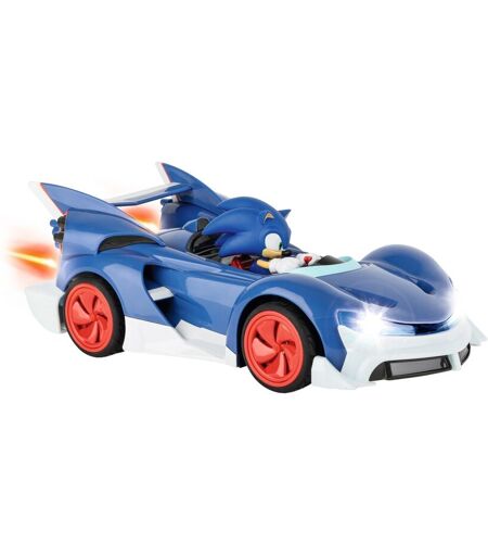 Dette SEGA-licenserede, fjernstyrede køretøj bringer Sonic the Hedgehogs verden hjem! Kultpindsvinet kører et køretøj i en skala på 1:18, som opnår en køretid på 20 minutter med sit USB-genopladelige batteri og kan nemt styres selv for RC-begyndere via den præcise 2,4 GHz-fjernbetjening. Sonics racerbil kan nå hastigheder på op til 9 km/t - og er let at se selv i mørke takket være LED-belysning! Et fuldaffjedret drev, pneumatiske dæk og det stabile karrosseri gør RC-bilen uforgængelig. ...