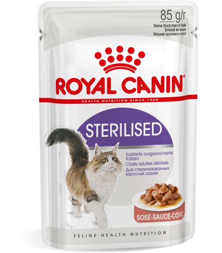 Kastrerede katte kan som regel have tendens til overvægt og derfor også udvikle særlige krav til foderet. Royal Canin Sterilised er specielt tilpasset ernæringsbehovene hos din voksne, kastrerede kat.Et moderat fedt- og kalorieindhold gør det lettere at kontrollere vægten og kan bidrage til at stabilisere vægten. Det tilpassede mineralindhold kan igen fremme en normal funktion af urinvejene. Endelig sørger den unikke smag for, at selv kræsne spisere bliver stolte ved skålen. Flot indvendigt og udvendigtSpecielt tilpasset den steriliserede kats fysiske behov.Blød og saftigKødstykkerne er særligt velsmagende, og saucen understøtter væskeindtaget.Royal Canin Sterilised i sauce i overblik:Komplet fuldfoder til steriliserede katteTilpasset energiindhold: specielt til kastrerede katteOpretholdelse af idealvægten: takket være et moderat fedt- og kalorieindholdAfbalanceret mineralindhold: kan bidrage til en normal funktion af urinvejenePortionsposer: for længere friskhedRoyal Canins kvalitetsløfteAlle Royal Canin-produkter gennemgår en omfattende kvalitetskontrol for at sikre en optimal foderkvalitet og imødekomme din kats individuelle ernæringsbehov og livsstil. Det betyder, at du med Royal Canin Sterilised i sauce tilbyder din kat en afbalanceret ernæring af høj kvalitet. Blandet fodring - klogt kombineret: For at imødekomme forskellige kattes individuelle præferencer fås Royal Canin Sterilised i sauce også som tørfoder i form af sprøde kroketter. Hvis du overvejer at blande fodring med tør- og vådfoder, skal du blot følge vores fodringsanbefalinger. På den måde sikrer du, at din kat får den rigtige mængde våd- og tørfoder.For mere afveksling: Royal Canins kvalitetsløfteFor at imødekomme den enkelte kats individuelle præferencer fås Royal Canin Sterilised også som stykker i gelé, mousse og som tørfoder i form af velsmagende kroketter.Du kan finde variation i madskålen her:Royal Canin Sterilised i geléRoyal Canin Sterilised MousseDet passende tørfoder finder du her:Royal Canin Sterilised 37 ...