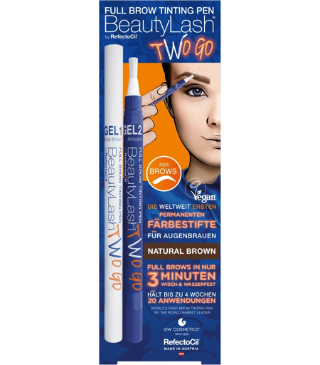 Beautylash by Refectocil Two i farven Natural Brown er det ultimative værktøj til at opnå smukt farvede øjenbryn derhjemme. Dette sæt giver dig mulighed for at skabe definerede og naturlige øjenbryn uden besværet ved at besøge en salon. Med en farve, der er specielt formuleret til at give et dybt og elegant resultat, er Beautylash by Refectocil Two ideel til dem, der ønsker at fremhæve deres øjenbryn på en subtil måde. Den neutrale brune nuance giver en smuk kontrast til forskellige hårfarver og hudtoner, hvilket resulterer i et flatterende og naturligt udseende. Efter en kort behandlingstid kan du fjerne overskydende farve og nyde det smukke, holdbare resultat af dine farvede øjenbryn. Med Beautylash by Refectocil Two kan du opnå professionelle resultater derhjemme og give dine øjenbryn den perfekte farve og form, du ønsker. OBS: Der skal drejes mange gange rundt – før produktet kommer ud. Hvis du har røde pigmenter i huden, kan farven trække orange op – her anbefales det at anvende farven Black Brown. Hvis du påfører selvbruner efter farvning af bryn, kan farven trække orange op - sørg altid for at aftørre brynene med en våd vatrondel efter påføring af selvbruner. Fordele: Brynfarve Neutral brun nuance Nem hjemmefarvning Professionelle resultater Dyb, elegant farve Langvarig resultat Naturligt og flatterende Op til 20 behandlinger i sættet Kan fås i 2 nuancer Anvendelse: Rengør og rens øjenbrynene Du kan med fordel bruge RefectoCil Eye Make-Up Remover 150 ml Åben gel 1 og drej indtil spidsen er dækket af gel (OBS. der skal drejes meget før produktet kommer frem) Påfør gel 1 direkte på øjenbrynene, alle hår skal være helt våde Lad det virke i 2 minutter, gel 1 absorberes af håret Fjern evt. resterende gel 1 med en tør vatpind eller vatrondel Åben gel 2 og drej indtil spidsen er dækket af gel Påfør gel 2 præcist med spidsen af børsten Håret skal være helt dækket med gel Lad virke i 1 minut Efter 1 minut fjernes gel 2 med en fugtig vatrondel Farven holder i flere uger ...