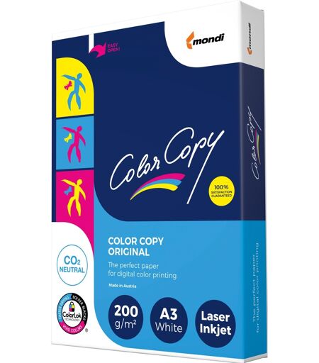 Color Copy 200g 420x297 R fra Inapa er et lyst hvidt, glat papir i DIN A3-format. Denne pakke indeholder 250 ark træfrit, ubelagt papir med en gramvægt på 200 g/m². Den er velegnet til farvelaserudskrivning i daglig kontorbrug. ...