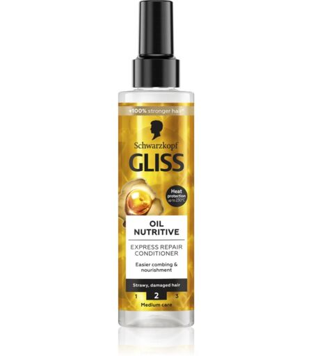 Schwarzkopf Gliss Oil Nutritive, 200 ml, Leave-In Conditionere til kvinder , Leave-in conditioneren Schwarzkopf Gliss Oil Nutritive giver øjeblikkeligt dit hår intens hydrering og næring. Den vil give dit hår alt, hvad det har brug for efter vask, uden at du skal bruge mere tid end nødvendigt på badeværelset. Den vil hjælpe med at udglatte håret og genoprette dets naturlige glans og integriteten af dets struktur. Den fremmer hårets regenerering og bidrager til, at håret er nemmere at rede ud. Alt dette nemt, hurtigt og uden behov for skylning. Bare påfør, vask eller red igennem, så er der sørget for dit hårs skønhed og sundhed. Prøv denne leave-in conditioner, og opdag en enkelt og hurtig måde til at genopbygge dit hår på og få mange andre fordele. Egenskaber: fugter og nærer håret styrker hårets fibre gør det nemmere at rede og efterfølgende at sætte Brugsvejledning: Sprøjt en passende mængde af produkt i det våde, frotteret hår og gnid med hænderne. Skyl ikke, og sæt derefter, som du plejer. ...