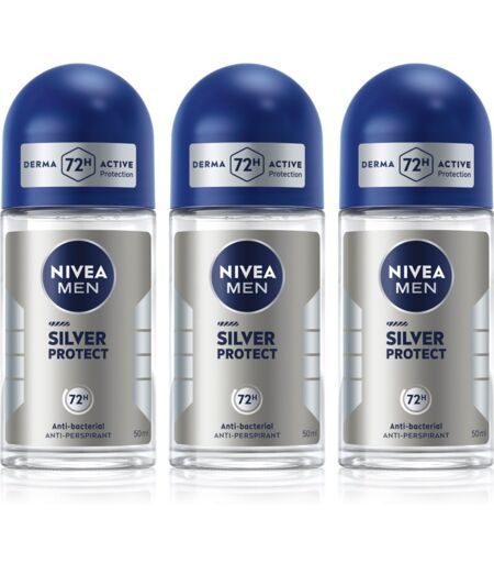 NIVEA MEN Silver Protect, 3x50 ml, Kropssæt til mænd til mænd, Produkt NIVEA MEN Silver Protect er en nødvendig hjælp hver dag i kampen mod sved. Sættet indeholder: 3x NIVEA MEN Silver Protect Antiperspirant roll-on til mænd 50 ml Egenskaber: beskytter mod en ubehagelig lugt efterlader en langvarig frisk følelse produkt er specielt udviklet til det, en mandehud har brug for Brugsvejledning: Påføres den rene og tørre hud under armene. Egner sig til hverdagsbrug. ...