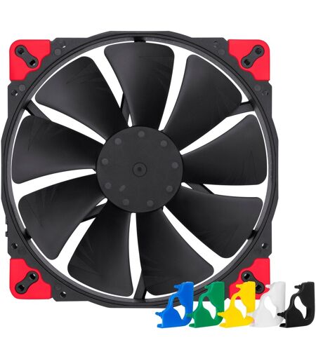 Ventilator diameter: 20 cm, Antal hastigheder: 2, Omdrejningshastighed (min.): 350 rpm, Omdrejningshastighed (maks.): 800 rpm, Støjniveau (høj hastighed): 18,9 dB, Luftstrøm: 146,9 m³/t, Maksimalt lufttryk: 1,08 mmH2O, Lejetype: Self-Stabilising Oil-pressure Bearing (SSO). Bredde: 200 mm, Dybde: 200 mm, Højde: 30 mm. Produktfarve: Sort ...