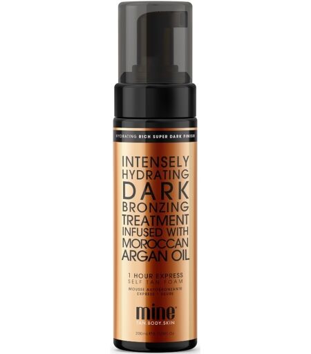 Minetan Moroccan Foam er en intens fugtgivende selvbruner-skum, som efterlader huden med en super mørkebrun finish. Denne skum er beriget med arganolie, der går ind og fugtgiver og nærer selv den tørreste hud. Derudover indeholder arganolie også næringsstoffer, som er kendt for at hjælpe med at reducere strækmærker, fine linjer og rynker. Med denne fantastiske skum kan man selv vælge den ønskede tan. Ved at skylle den af efter 1 time vil man opnå et naturligt resultat, og ved at lade den sidde længere giver den en dybere og mørkere farve. Fordele: Selvbruner-mousse Krop og ansigt Anbefales til alle hudtyper -og toner Ingen orange toner Ingen kunstig selvbruner-duft Stribefrit resultat Beriget med arganolie Fugtgivende og nærende Parabenefri Vegansk Indeholder naturligt DHA Anvendelse: Skummen skal påføres på ren og eksfolieret hud Brug Minetan Life Is Better In Color Applicator Mitt til at fordele den med Vær sparsom med produkt på albuer, knæ og ankler Vask grundigt hænder efter påføring Skyl ansigtet/kroppen i lunkent vand i 45 sekunder efter 1-3 timer uden brug af sæbe Tag først et normalt brusebad 8-16 timer efter påføring Ingrediensliste: Aqua (Water), Propylene Glycol, Dihydroxyacetone, PEG-6 Caprylic/Capric Glycerides, Caramel, Dihydroxypropyl PEG-5 Linoleammonium Chloride, PEG-7 Glyceryl Cocoate, Phenoxyethanol, Caprylyl Glycol, Potassium Sorbate, Hexylene Glycol, Argania Spinosa (Argan) Kernel Oil, Macadamia Integrifolia (Macadamia) Seed Oil, Cocos Nucifera (Coconut) Oil, Simmondsia Chinensis (Jojoba) Seed Oil, Rosa Canina (Rosehip) Fruit Oil, Vitis Vinifera (Grape) Seed Oil, Persea Gratissima (Avocado) Oil, Cucumis Sativus (Cucumber) Fruit Extract, Ascorbic Acid (Vitamin C), Tocopheryl Acetate (Vitamin E), Yellow 5 (CI 19140), Green 5 (CI 61570), Red 40 (CI 16035), Red 33 (CI 17200), Blue 1 (CI 42090), Yellow 6 (CI 15985) ...