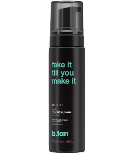 b.tan Fake It Till You Make It er en lækker selvbruner, som dufter af sommer og ikke af selvbruner. Denne farve kan bruges til alle hudtoner, og er god til dig, som ønsker at få en medium varm farve. Allerede efter en time kan den vaskes af, og så vil du have den flotteste kulør - dog kan du godt lade den sidde længere, hvis du ikke er bleg for at vove dig ud i en mørkere tone. Denne mousse minder mest om en lækker chokolademousse, og den er super lækker at smøre på huden, og med den mørke farve, kan du nemt se hvor du kommer til. Fordele: Selvbruner mousse Giver en medium, varm farve Kan vaskes af efter en time Lækker at smøre på huden Giver ingen striber 100% naturlige ingredienser Parabenefri Veganvenlig *Anvendelse:** For at opnå det bedste resultat, anbefales det at peele huden godt inden påføring Påfør eventuelt bodylotion på de områder, som er meget tørre f.eks. albuer, knæ og knoer Anvend b.tan selvbrunerhandske til at fordele produktet med Smør den godt ud på kroppen og afslut med hænder og fødder Vent en time og skyl derefter kroppen under lunkent vand i ca 45 sekunder uden brug af sæbe Hvis en dybere og mørkere farve ønskes, kan den påføres af to omgange eller man kan lade den sidde i flere timer inden den skylles af Ingrediensliste: Water (Aqua), Propylene Glycol, Dihydroxyacetone, Glycerin, Cocamidopropyl Betaine, Caprylyl/Capryl Glucoside, Sodium Lauroamphoacetate, Sodium Metabisulfite, Sodium Citrate, Citric Acid, Cetyl Hydroxyethylcellulose, Disodium Phosphate, Sodium Phosphate, Hydrated Silica, Silica Dimethyl Silylate, Ethylhexylglycerin, Phenoxyethanol, Red 40 (CI 16035), Blue 1 (CI 42090), Yellow 5 (CI 19140) ...