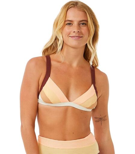 Rip Curl Women's Block Party Spliced Fixed Triangle Bikini Top Bone, L