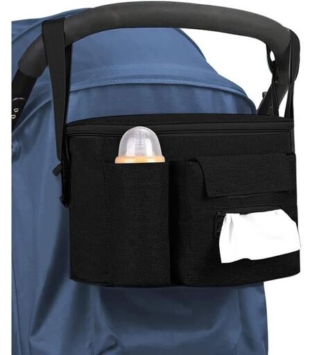 Opbevaringstaske til klapvogn og barnevogn, pusleorganisator, klapvognstilbehør til alle buggy-modeller - sort