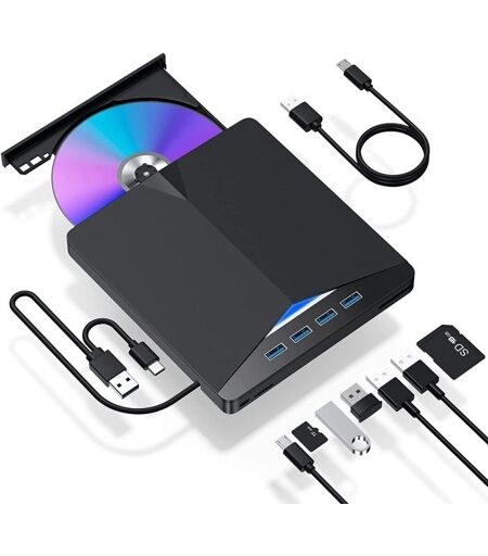 Eksternt DVD-drev til pc Ekstern cd-rom USB 3.0 og Type-C med SD/TF-kortlæser og USB, CD-RW VCD til Windows 7/8/10
