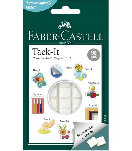 Faber-Castell Tack-it Klæbepuder - kan bruges til utallige formålMed Tack-it fra Faber-Castell får du et klæbemiddel, som du nemt kan genanvende og flytte rundt på flere gange uden at det mister sin klæbestyrke, samtidig er produktet dermatologisk testet, så det kan bruges af alle, selv hvis du har allergner. Klæbemassen, også kaldet elefantsnot, klæbegummi eller klæbepuder , kan bruges til utallige forskellige formål indenfor hobby, dekoration, håndværk, kontor, fabrik, skole og lign. Brug det til f.eks. ophængning af plakater, kalendere og billeder.Tack-it klæbepuderne har et firkantet snit, som gør det super nemt at rive fra hinanden, hvilket gør det meget nemt at bruge og giver dig samtidig muligheden for selv at bestemme præcis den mængde du ønsker at bruge. Farve: Hvid90 stk. pr. pakkeLet at tilpasse mængdenDermatologisk testet ...