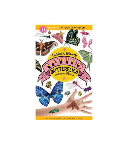 Kids will love adorning themselves with the stunning specimens in Fluttery, Friendly Tattoo Butterflies and Other Insects. Eighty-one illustrated temporary tattoos introduce creatures with amazing colors and realistic features, from the brilliant blue Cypris Morpho Butterfly to the Garden Tiger Moth, the Jewel Beetle, and the Peacock Pansy Butterfly. Accompanied by fascinating facts about each insect, the tattoos come in sheets and are ready to be applied with a damp cloth, offering bright, bold body art. Also available in the Tattoos That Teach series: Creepy, Crawly Tattoo Bugs; Super, Strong Tattoo Sharks; and Roaring, Rumbling Tattoo Dinosaurs. ...