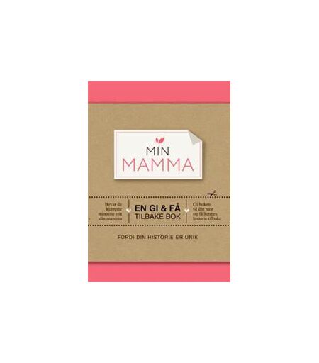 Den eneste gaven du ønsker å få tilbake! Med denne boken får du gitt bort en veldig personlig gave der nettopp din mamma kan fylle ut engasjerende, morsomme og uventede svar om seg selv. Kanskje får du vite noe nytt om din mamma? - Hva ville du bli da du vokste opp? - Hvordan så rommet ditt ut? - Hva er det fineste du har oppnådd til nå? Når og hvor mye du skriver er helt opp til deg. Akkurat som det er du som bestemmer om det er noen spørsmål du ikke vil svare på. Etter hvert kapittel er det plass til bilder og minner, men man kan også bruke den samme plassen til å skrive om noe man selv ønsker. Det hele blir en unik og personlig bok som du får tilbake. Se utdrag fra Min mamma her: ...