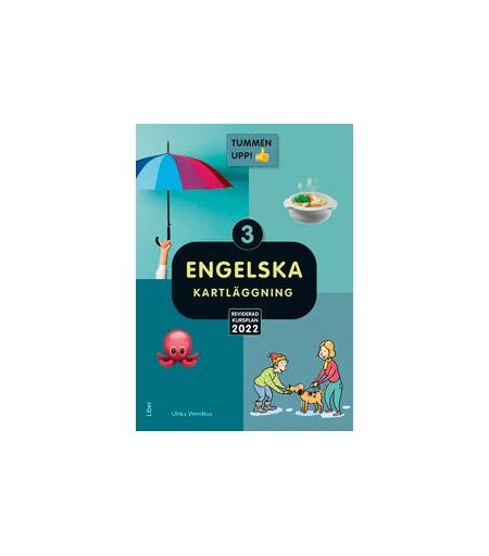 Tummen upp! Engelska Tummen upp! Engelska kartläggning åk 3 har övningar som är direkt kopplade till det centrala innehållet i åk 3 och kunskapskraven för åk 6. Både det centrala innehållet och kunskapskraven är tydligt presenterade på varje sida i anknytning till övningarna. Innehållet bygger på ett stoff (ordförråd och fraser) som man kan förvänta sig att eleverna ska känna till i de lägre årskurserna. Längst bak i häftet finns en tabell "Elevens engelskprofil" samt en översikt som ger en samlad bild av elevens kunskaper i relation till det centrala innehållet och kunskapskraven i Lgr22. Läraren och eleven kan utifrån resultatet fokusera på och arbeta vidare med de områden som eleven bör träna mer på, och reparera eventuella kunskapsluckor. Kartläggningen kan också med fördel användas inför utvecklingssamtal och till elevens individuella utvecklingsplan. ...