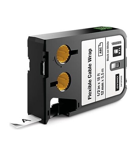 Fleksibelt kabeltape i nylon passer til Dymo XTL Til markering af ledninger, kabler og runde overflader. Materialet er et brugbart, fleksibelt nylon designet til at tilpasse sig og sidde fast. Dimensioner: Bredde: 12mm Længde: 5,5m Farve: sort på hvidt ...