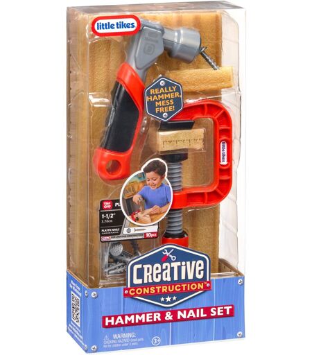 Hamre og sømme - næsten som de voksne: Little Tikes hammer- og sømsættet bringer en værkstedsfølelse ind på børneværelset. Dette sæt indeholder legetøjsplastikskrueklemme og hammer. Derudover er der 7 plastiksøm og en plade lavet af blødt skum, der ligner træ. I alt indeholder sættet 10 stykker. ...