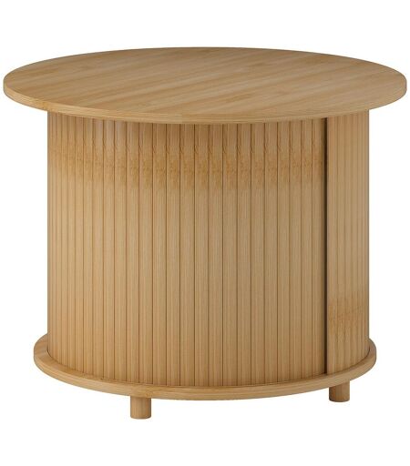 Sofabord stuebord af bambus med skjult opbevaringsplads og skydedør, rundt sidebord i moderne stil, til stue, natur, Ø60 x 45 cm