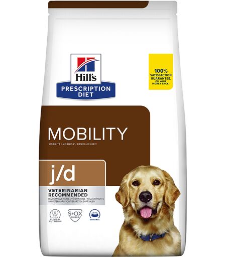 Ved køb af det udvalgte veterinærfoder bekræfter du, at dit kæledyr er blevet undersøgt af en dyrlæge, der har anbefalet dette særlige veterinærfoder på grundlag af en diagnose, og at du har læst og forstået følgende anvisninger. Det anbefales at indhente råd fra en dyrlæge inden brug eller inden forlængelse af brugsperioden.I den periode, hvor du fodrer med diætfoder, bør du gå til regelmæssig kontrol hos dyrlægen. Hvis sundhedstilstanden forværres, skal du omgående kontakte en dyrlæge. Hill's Prescription Diet j/d Joint Care er specielt udviklet til at støtte stofskiftet i leddene ved slidgigt.Det førsteklasses tørfoder indeholder en høj andel af EPA samt andre omega-3-fedtsyrer og E-vitamin. På den måde kan din hunds normale ledfunktion understøttes optimalt. For at understøtte den normale hjertefunktion ved kronisk hjerteinsufficiens er indholdet af natrium desuden begrænset.Hill's Prescription Diet Canine j/d Joint Care med kylling kort fortalt:• Diæt-fuldfoder til støtte af stofskiftet i leddene ved slidgigt støtte af hjertefunktionen ved kronisk hjerteinsufficiens• Normal ledfunktion: højt indhold af EPA og E-vitamin, højt samlet indhold af omega-3-fedtsyrer• Normal hjertefunktion: understøttet af et begrænset natriumindhold• Med kylling: giver værdifulde animalske proteiner, velsmagende• Naturlige brusknæringsstoffer: Kilde til glucosamin, chondroitinsulfat• Leverer L-carnitin Normal hud og skinnende pelsFormuleret med essentielle fedtsyrer Optimal ledfunktionOpskrift med et højt indhold af omega-3-fedtsyrer, EPA og E-vitamin kan understøtte det naturlige stofskifte i leddene.Styrkelse af immunsystemetKlinisk afprøvede antioxidanter Støtter musklerneRåprotein af høj kvalitet bidrager til en stigning og vedligeholdelse af muskelmassen. 100 % smagsgaranti – dit kæledyr vil elske detHill's Prescription Diet produkter er udelukkende fremstillet af ingredienser af høj kvalitet og har en fremragende smag. Hill's er overbevist om, at dit kæledyr vil elske Hill's Prescription Diet og giver derfor en 100 % smagsgaranti for disse produkter. ...