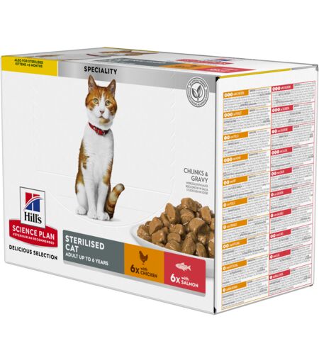 Hill's Science Plan Adult Sterilised Kylling - Supplement: 12 x 85 g Young Adult Sterilised Kylling & Laks