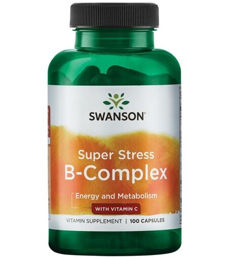 Super Stress B-Kompleks med C-Vitamin – 100 kapsler – Swanson