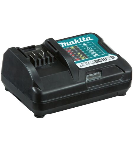 Med opladeren DC10WD 12 V maks. fra Makita kan Makita 10,8 volt eller 12 volt Li-Ion glidebatterier oplades på kortest mulig tid. På grund af den perfekte interaktion mellem batteri og oplader skånes Makita-batterierne, hvilket også øger akkumulatorens levetid. En indikatorlampe giver information om batteriets opladningsniveau, hurtigopladerens beredskab eller en funktionsfejl. ...