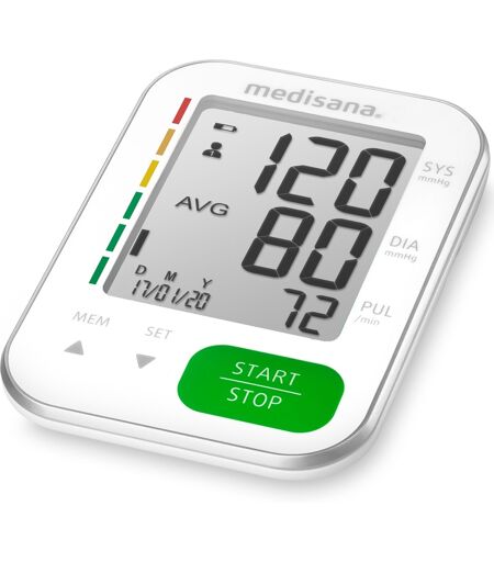 BU565 overarms blodtryksmåler Medisana har stor erfaring med alt, der har med blodtryksmåling at gøre. Måleprincippet, der bruges af Medisana-udstyr, har høj nøjagtighed. En række omfattende kliniske undersøgelser, udført i henhold til strenge internationale standarder, beviser dette. Vi anbefaler at måle dit blodtryk dagligt samtidig for at opnå sammenlignelige værdier. Det store display med de store tal letter den nemmest mulige aflæsning. Specifikationer: - Overarms blodtryksmåling - Hurtigere aflæsning takket være inflationsteknologi - Stort baggrundsbelyst LCD-display: 7,3 x 6 cm - Viser systolisk, diastolisk, puls og dato - Arytmiindikator – viser om der er uregelmæssige hjerteslag - Målingen er klassificeret i henhold til WHOs verdenssundhedsorganisation bruger trafiklys farveskema - 120 minder til 2 brugere - Beregner gennemsnitsværdien af data fra de sidste 3 resultater - Meget store tal i displayet for nem læsning - Batteridrevet (4 stk AAA). - Certificeret medicinsk udstyr i henhold til MDD (Medical Device Directive) Blodtryk: > 0- 299 mmHg Puls: 40-180 slag/min Vægt: 0,188 kg Størrelse: 9,26 x 12,95 x 3,03 cm ...