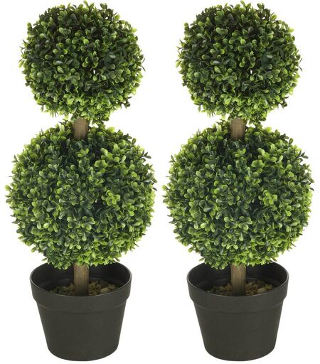 Kunstige Planter, Sæt Med 2 Buksbom, 60 Cm Kunstig Plante Med Dobbeltkugle, Uv-Resistent Stueplante, Grøn