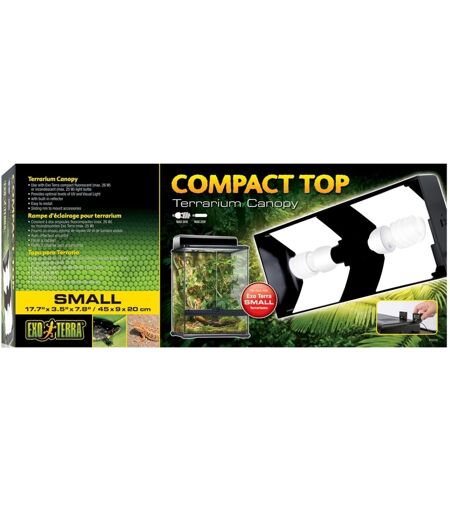 Denne kompakte terrarium dagslys ledsagerlampe er designet til brug med Exo Terra Glass terrariet. Denne ledsagerlampe, der er nem at installere, er designet til at bruge kompakte lysstofrør eller lavwatt-glødepærer. De forskellige Exo Terra Repti Glo kompakte lysstofrør kan bruges sammen (PT2226 / PT2227 / PT2228) for at skabe det ideelle UV-lys/synligt lysforhold eller med en glødelyskilde som Exo Terra Sun Glo for at øge lufttemperaturen i terrariet . Valgfrit tilbehør som Exo Terra Digital termometer og hygrometer og termostat Exo Terra termostat og hygrostat kan monteres på låget ved hjælp af specielle installationsriller. til montering Mål: 45 x 9 x 20cm ...