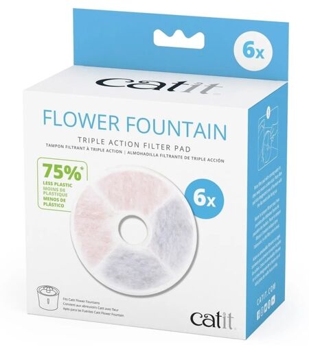 Filterpuden fjerner magnesium og calcium fra postevandet. Disse mineraler kan ophobes i dit kæledyrs nedre urinveje og føre til urinvejssygdomme, hvilket er et almindeligt sundhedsproblem for katte. Dette produkt er ikke designet til at helbrede nogen sygdom eller sygdom. 3 forskellige komponenter til rent vand 1. Fjerner lugte forårsaget af bakterier og klor, som katte er følsomme over for. 2. Blødgør postevand for at hjælpe med at forhindre urinvejsinfektioner, hvilket er et almindeligt sundhedsproblem for katte. 3. Filtrerer hår, sedimenter og snavs fra, så vandet altid er frisk! Udskift filterpuden hver 30. dag for at få renere, bedre smagende vand! Sæt med 6 filtreIndeholder 75 % mindre plastik sammenlignet med den originale filterpatronAktivt kul hjælper med at fjerne lugte og urenhederIonbytterharpiks blødgør postevandet for at forhindre urinvejssygdomMesh filtrerer hår, sedimenter og snavs udTil brug med Catit Flower Fountains ...
