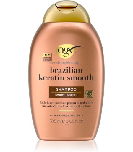 OGX Brazilian Keratin Smooth Udglattende shampoo for skinnende og blødt hår 385 ml