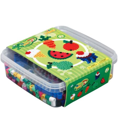 Pearl yummy fruits and other goodies with these maxi beads. This jar contains 600 Hama maxi beads in many colors and a round bead plate. Ironing paper, pattern sheets and 2 holders for your finished tiles are also included. The box is made of plastic and is resealable. The dimensions of the box are approx. 19x19x6 cm. The beads are about 1 cm high. Not recommended for children under 3 years. ...
