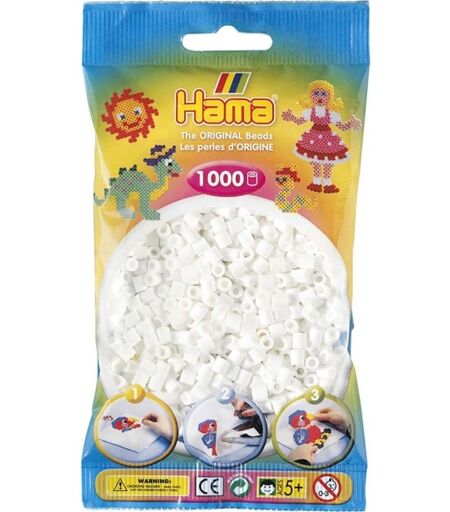 Taske med 1.000 Hama Midi perler i hvid. Med perler i mange farver kan du lave alverdens mønstre og figurer. Kun fantasien sætter grænser At perle med Hama perler er med til at styrke barnets kreativitet og samtidig udvikle finmotorikken på en sjov og spændende måde Anbefales fra 5 år. ...