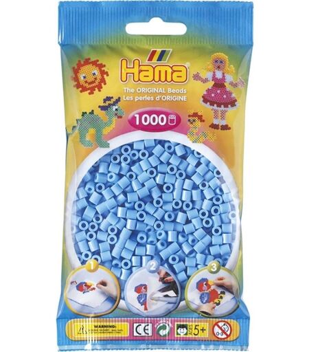 Pose med 1.000 Hama Midi perler i pastelblå. Med perler i mange farver kan du lave alverdens mønstre og figurer. Kun fantasien sætter grænser At perle med Hama perler er med til at styrke barnets kreativitet og samtidig udvikle finmotorikken på en sjov og spændende måde Anbefales fra 5 år. ...