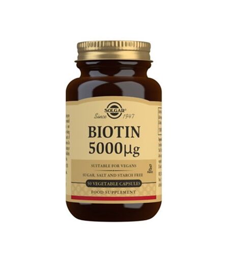 SOLGAR BIOTIN 5000µg Det bidrager bl.a. til: Vedligeholde et normal hår, og en normal hud.Fremme energi og kvalitetMindske træthed og udmattelse Dispenseringsform Kapsel Dosis og anvendelse 1 kapsel dagligt - tages til måltidet. Anbefalet daglig dosis bør ikke overskrides. ...