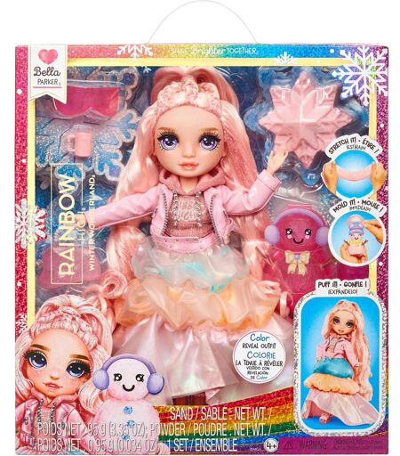 Oplev regnbueverdenens vinterlandskab! Rainbow High Winter Wonderland Doll modedukkerne kommer i glitrende vinteroutfits og matchende tilbehør, såsom høreværn, snebriller og håndtaske. Magisk sne i tøjet tilføjer et strejf af vintermagi: Ved hjælp af vand kan du fluffe outfittet op med farvet glimmersne. Den smukke, fuldt artikulerede modedukke har øjne af høj kvalitet og langt hår til styling. Der medfølger også et fantastisk snemandshåndværkssæt med formbar sne og tilbehør til kreativt sjov. ...