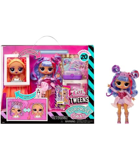 Mød Bailey, den fortryllende L.O.L. Surprise Tweens Surprise Swap Fashion Doll Buns-2-Braids, som kommer med to unikke looks og tager dig med ind i en verden af ultimativ frisør- og stylingsjov takket være hovedbyttefunktionen! Bailey er en født performer, der forbløffer publikum med sin kraftfulde stemme på mikrofonen. Bag kulisserne nyder hun dog sine stille stunder, hvor hun udfolder sine kunstneriske talenter ved at skrive poesi. Med over 20 overraskelser i vente, herunder stylinghoved og fantastisk mode, er unboxing-oplevelsen gigantisk! Skift Baileys look på få sekunder ved at skifte hendes blå-lilla-lyserøde frisure ud med det neonmagenta-orange stylinghoved. Så kan du hurtigt ændre deres outfit og kombinere nyt tilbehør som hovedbeklædning og hårtilbehør! Når du er færdig med at style, kan du gentage byttefunktionen samt mode- og tilbehørsskift så mange gange du vil og skabe utallige mix-and-match-looks! Tilbehøret kan gemmes pænt væk i den yndige æske, og det ekstra stylinghoved kan placeres på hovedstøtten, når det ikke er i brug - dette gør oprydningen lettere. ...