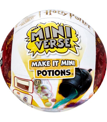 Harry Potter x MGA''s Miniverse! Helt nye gør-det-selv-mini-eliksirkopier til at fremstille, sætte op, udstille og samle! Hver kugle kommer med realistiske mini "ingredienser" og tilbehør, som du kan bruge til at lave dine egne mini-kopier af dine yndlingseliksirer fra Harry Potter-filmserien! Fra Skele-Gro til Amortentia til Polyjuice! Hver pakke er en overraskelse, så du finder ikke ud af, hvilken mini-eliksir-kopi du har, før du pakker den ud! Brug den medfølgende samlermanual til at identificere din miniature, og følg "opskriftskortet" for at forberede kunstværket. Efter håndværket skal du hærde din mini med UV-lys. Når det er hærdet, har du et mini-eliksirsamlerobjekt at vise frem! ...