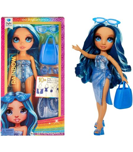 Fordyb dig i Rainbow Highs verden med dukkerne fra Swim & Style-serien! Vis din sande flamme af farver, og lad din unikhed skinne. Den fortryllende Skyler inviterer dig til at fortælle kreative og farverige historier. Skyler er cirka 28 centimeter høj og forfører med en alsidig wrap, der kan styles på over 10 måder - til fantasifulde stylingeventyr. Saml alle Swim & Style-dukkerne, og oplev, hvordan de inspirerer fantasien sammen - uanset om det er i et enkelt spil eller i en farverig blanding. Vær kreativ, vær dig selv og lad din personlighed skinne i lyseblå med Skyler! ...