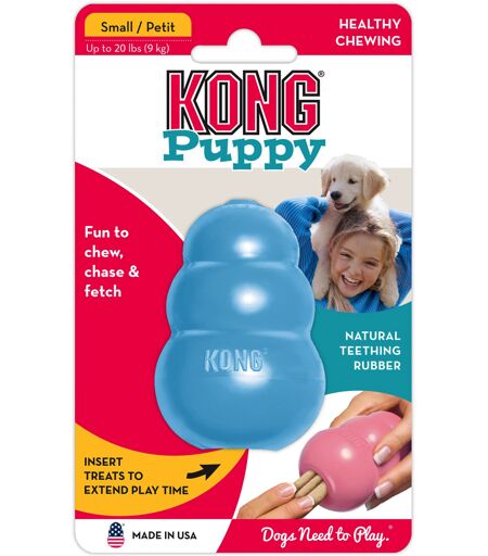 Så sjovt kan det være at få tænder! KONG Puppy er af ekstra blødt gummi og egner sig optimalt til hvalpe, der får tænder og små hunderacer, der ikke bider så hårdt. Den specialudviklede tandgummi virker ikke kun smertelindrende, men hopper også i alle mulige retninger og sørger for masser af sjov.Hundelegetøjet KONG Puppy understøtter en sund udvikling af tandsættets muskulatur og egner sig fremragende til hvalpeopdragelse. Træner du f.eks. dine dyr til at være i en hundeboks, kan du gemme godbidder i Kong Puppy. Eller beskæftig din vovse med sjove gemmelege, så deres opmærksomhed afledes og de ikke bliver bange, når de er alene.Puppy KONG i et overblik:Hundelegetøj af blødt gummi til hvalpe, der får tænder og små hundeBidrager til en sund udvikling af tandsættet og kæbemuskulaturenEgnet til at fylde med godbidder: Træn din hvalp eller lille hund, f.eks til hundeboksenHopper i alle retninger og sørger for ekstra meget sjovFås i to størrelserFarve: Pink eller blåMateriale: NaturgummiStørrelsesoversigt:StørrelseMålEgnet til hvalpe:XSL 5,7 x B 3,5 x H 3,5 cmop til 2 kgSL 8 x B 5 x H 5 cmop til 7 kgML 8 x B 5,5 x H 5,5 cm7 - 16 kgLL 10 x B 7 x H 7 cm13 - 30 kgVi anbefaler følgende, passende snack til hvalpe:Rinti Extra Puppy-Sticks Uden kunstige tilsætningsstofferEkstra stor kødandelMed righoldig omega-3Henvisning:Som med alle andre produkter bør du holde øje med dit dyr, når det leger med legetøjet. Check regelmæssigt legetøjet for skader og skift det ud, hvis det er defekt eller har mistet dele, da man ellers ikke kan udelukke, at dyret kommer til skade. ...