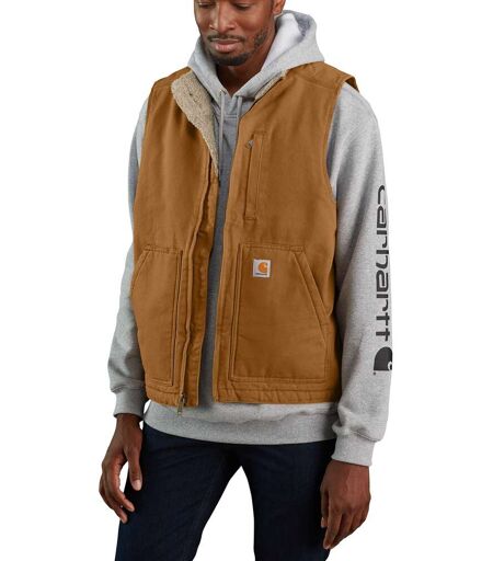 Carhartt Men's Washed Duck Lined Mock Neck Vest ® Brown, XL
